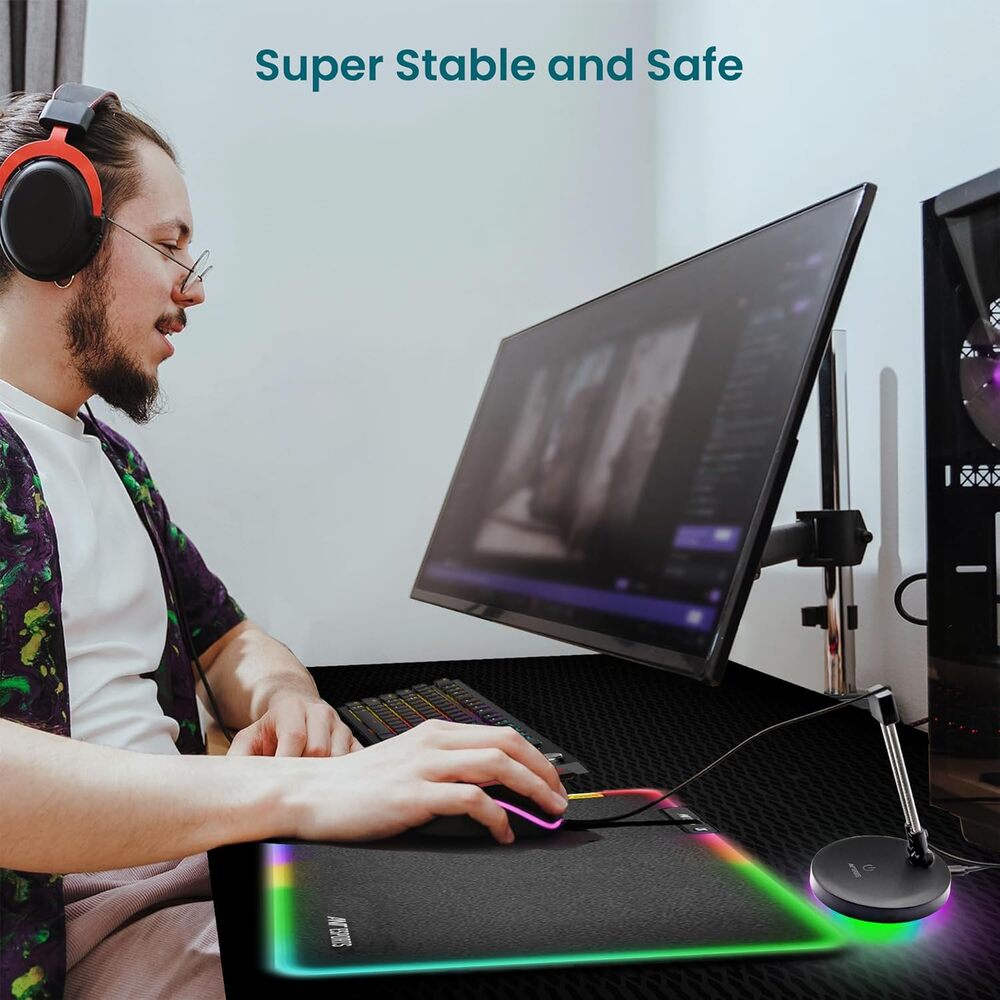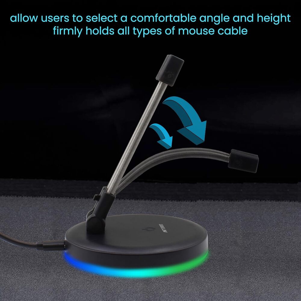 Adjustable Spring Arm with Silicone head is compatible with Rubber, Braided and Paracord mouse cables. Spring-loaded heads allow firm grip to the cable for smooth movement of Mouse as the cable is always held to silicone head on top.