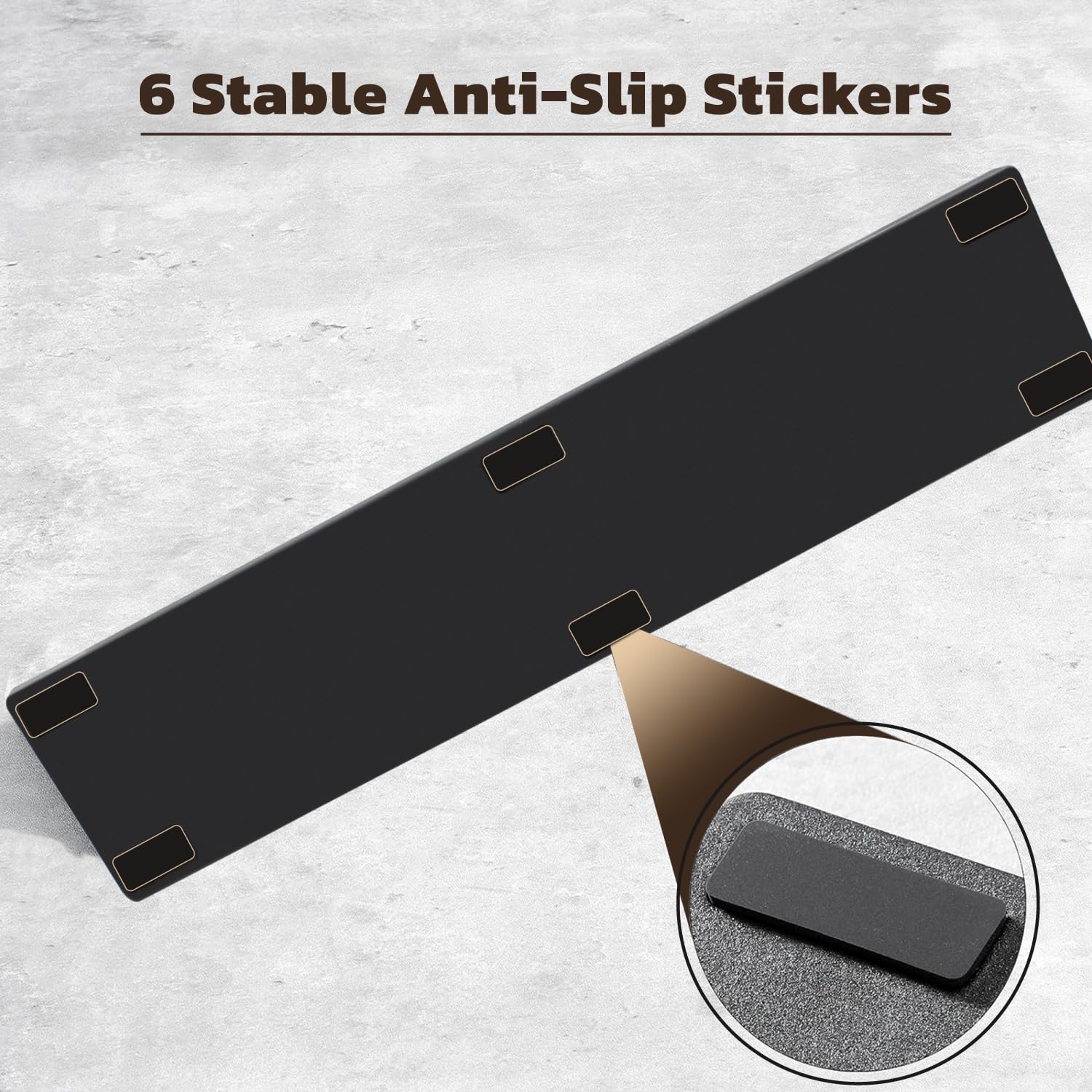 The pad base is attached stably with 6 anti-slip rubbers, which provides more stability for the wrist pad and makes the support part seemed to be stickered to the keyboard as one.These wrist rests are universally compatible with any keyboard which falls under the given product classes of keyboard! Providing you with great compatibility, irrespective of any brands.