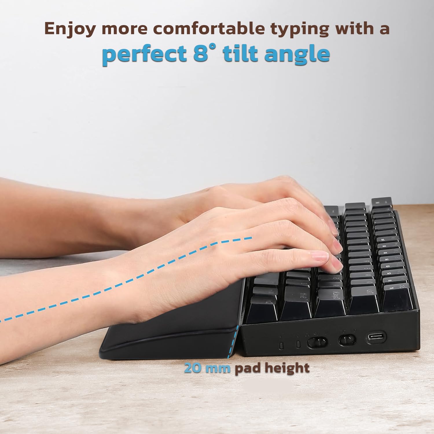 Give your existing keyboard a very affordable upgrade with the Ant Esports Keyboard Wrist Rests. Available in three sizes, Mini, TKL and Full, these wrist rests are fully compatible with any Traditional Full-Size, Tenkeyless and 60-65% Layouts.20 mm pad height with perfect 8° tilt angle, makes sure your hand is naturally laid on the keyboard without a hanging wrist and provides with a ergonomic feel that’s a formula for great typing experience without tiring your wrists.