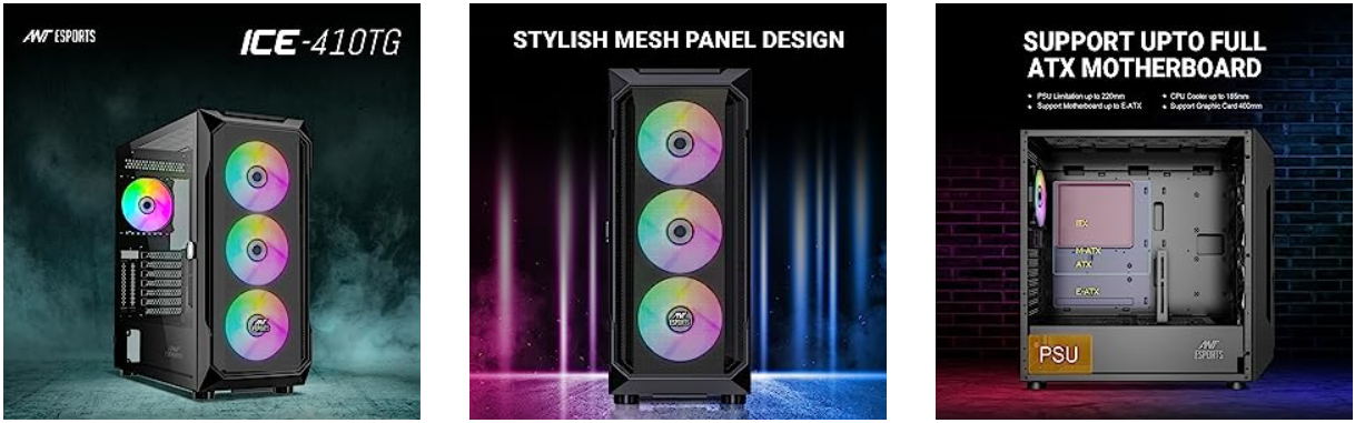 Ant Esports ICE-170TG is designed to elevate your gaming experience to the next level, this cabinet is a perfect blend of style and performance. The ICE-170TG features a sleek front glass panel that not only adds a touch of elegance to your gaming setup but also allows you to showcase your powerful components in all their glory. The transparent panel lets you feast your eyes on the gaming prowess inside, making it an instant head-turner among your gaming friends. With four pre-installed fans right out of the box, the ICE-170TG ensures optimal cooling right from the start. Say goodbye to overheating worries as these fans work tirelessly to maintain ideal temperatures during intense gaming sessions. But that's not all – if you're after even more cooling power, the cabinet offers impressive flexibility.