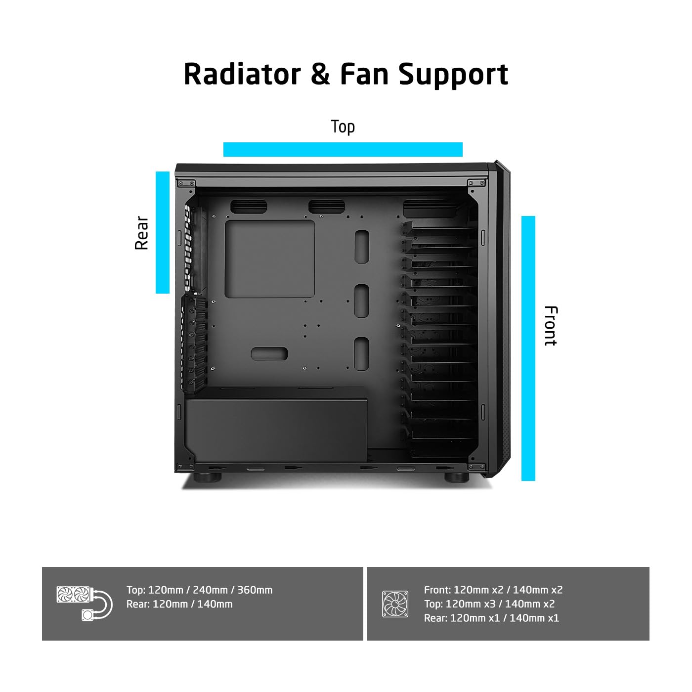 Best in Class Compatibility!Install up to 34cm length GPUs and 18cm height of CPU Coolers |