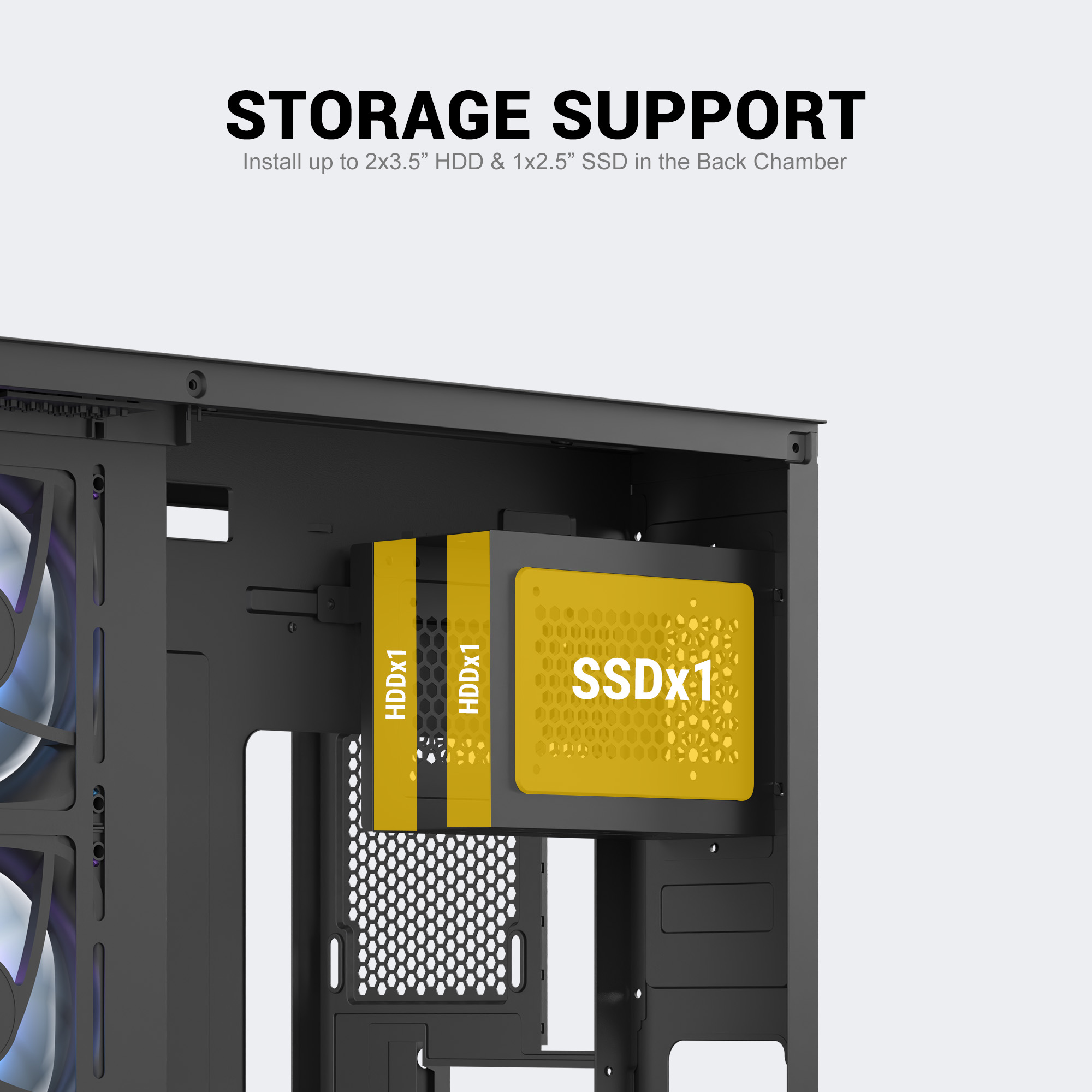 | Drive Bays | 3.5 Inch / 2.5 Inch | 2 HDD + 1 SSD |