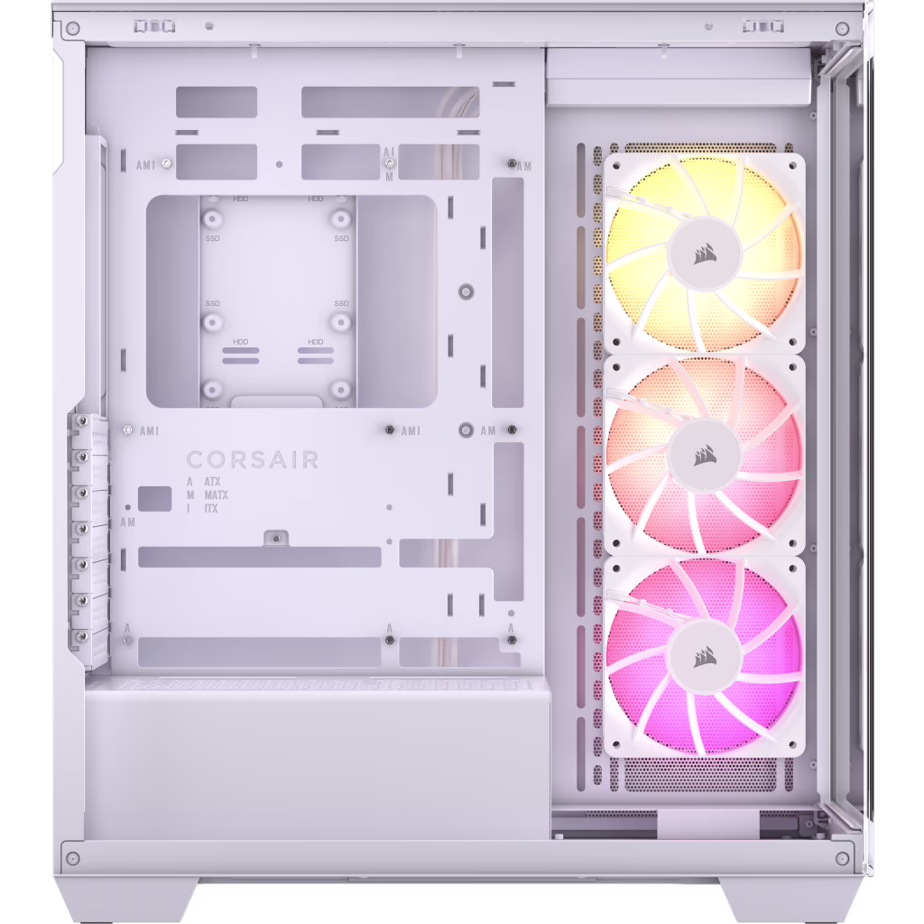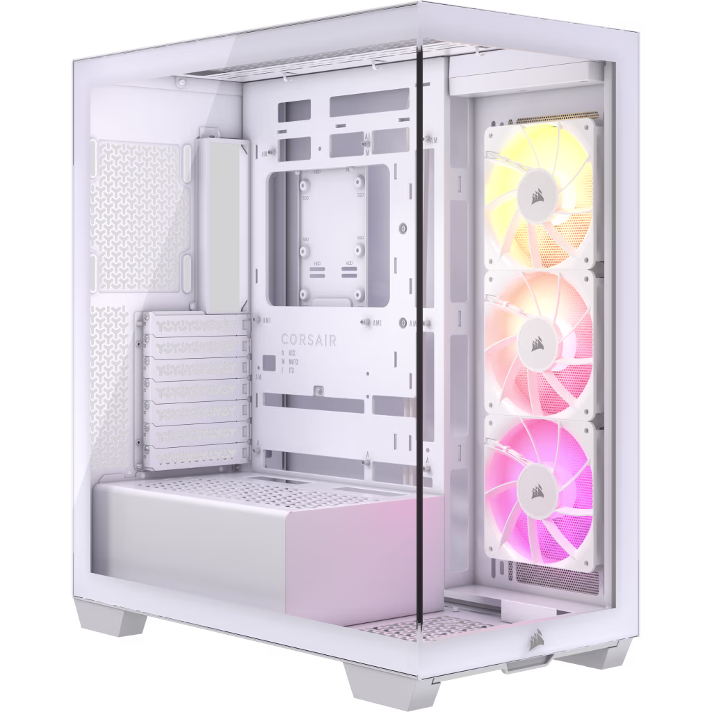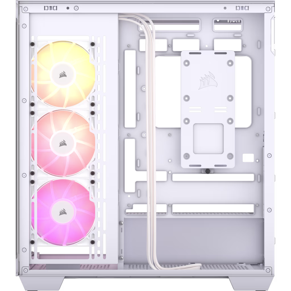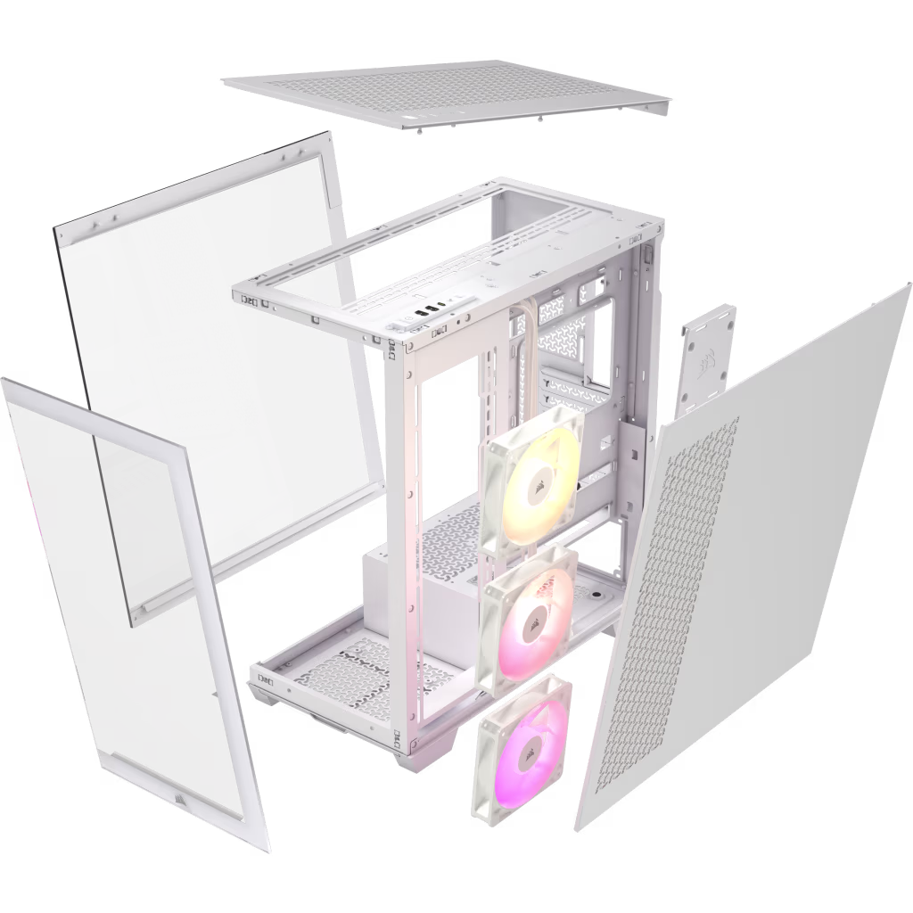 The CORSAIR 3500X ARGB Mid-Tower Glass PC Case combines builder-friendly features with a stunning wraparound glass aesthetic and three pre-installed RS120 ARGB fans.