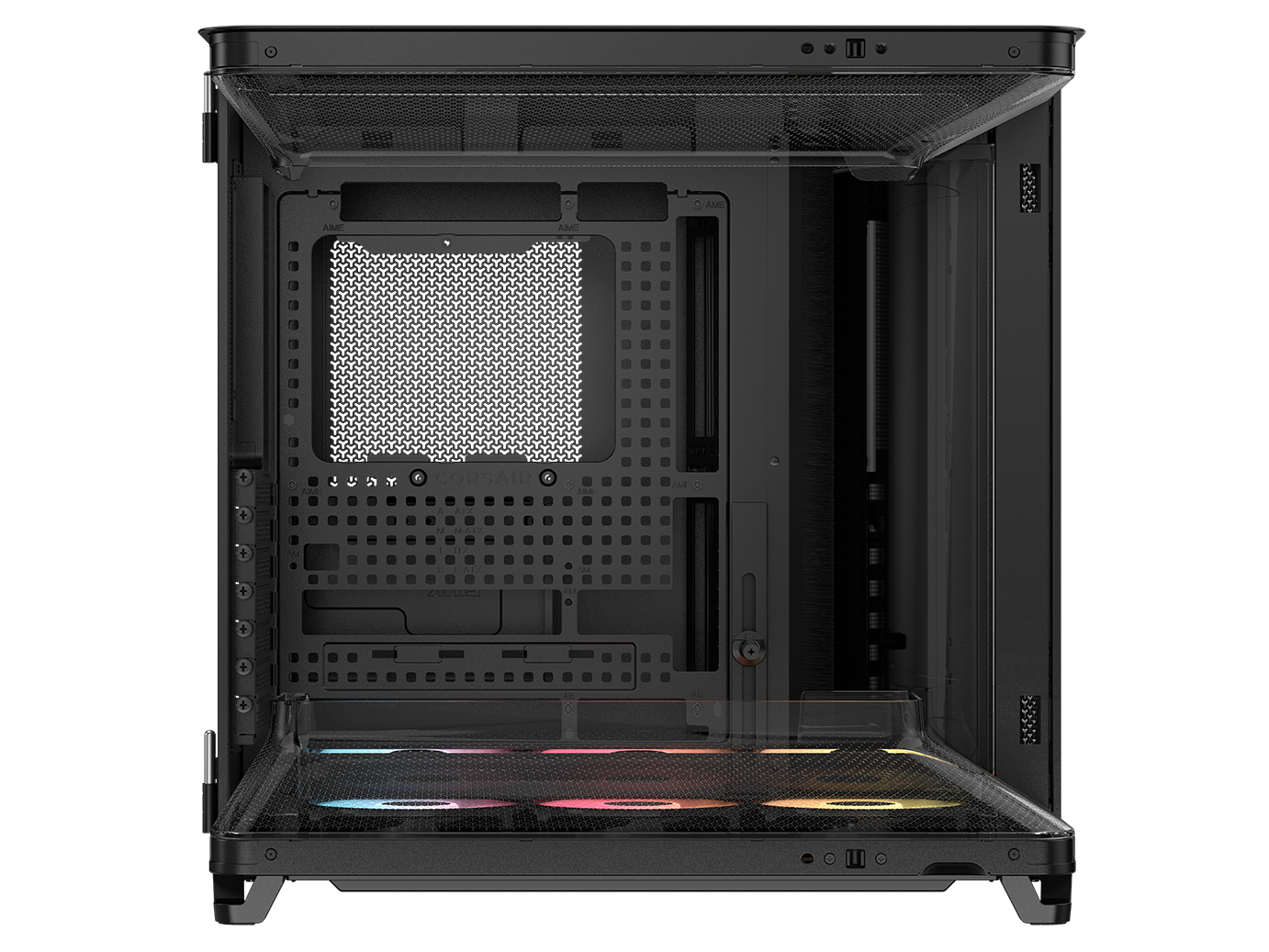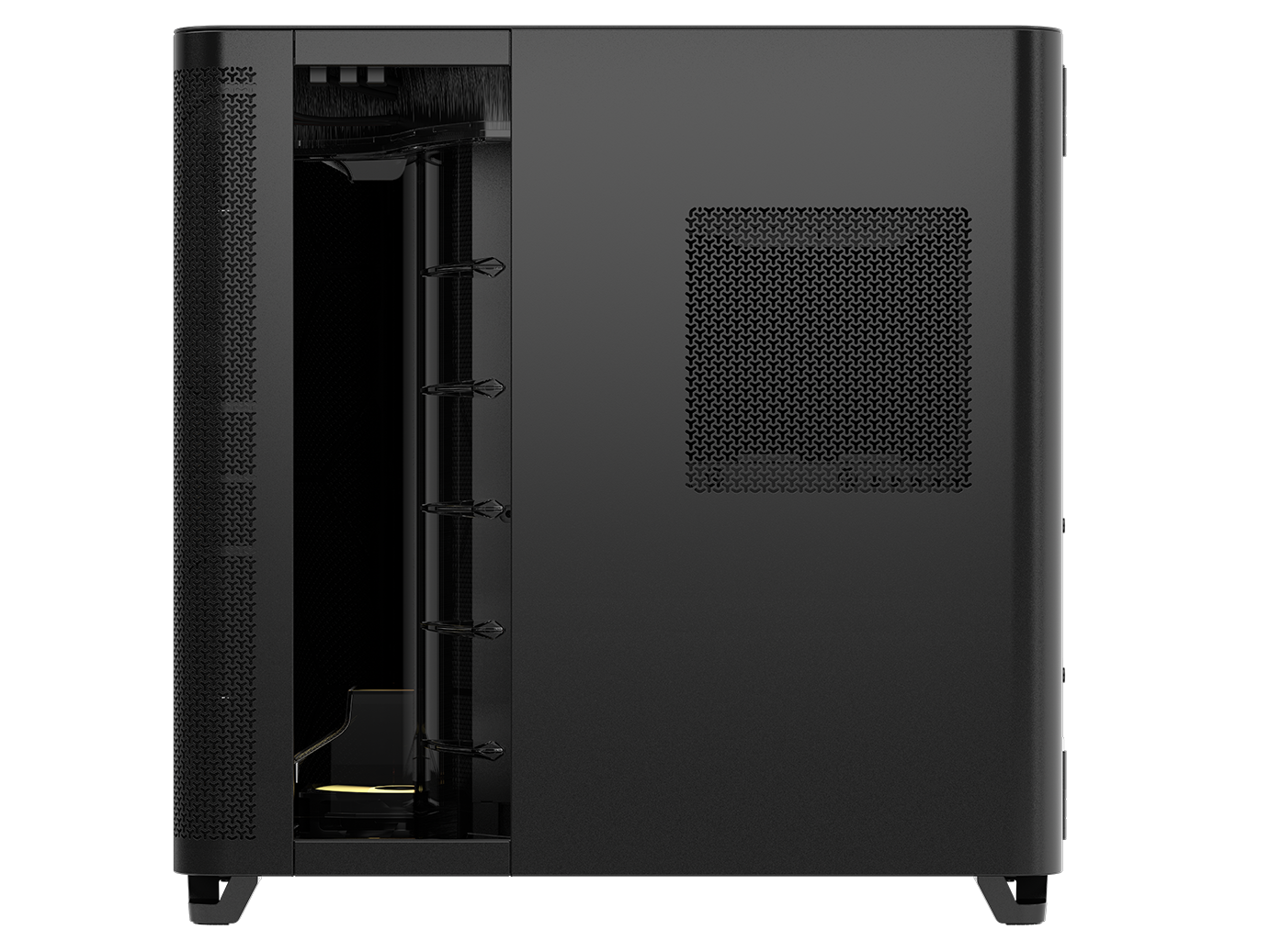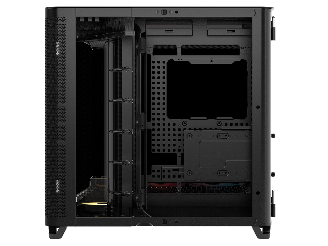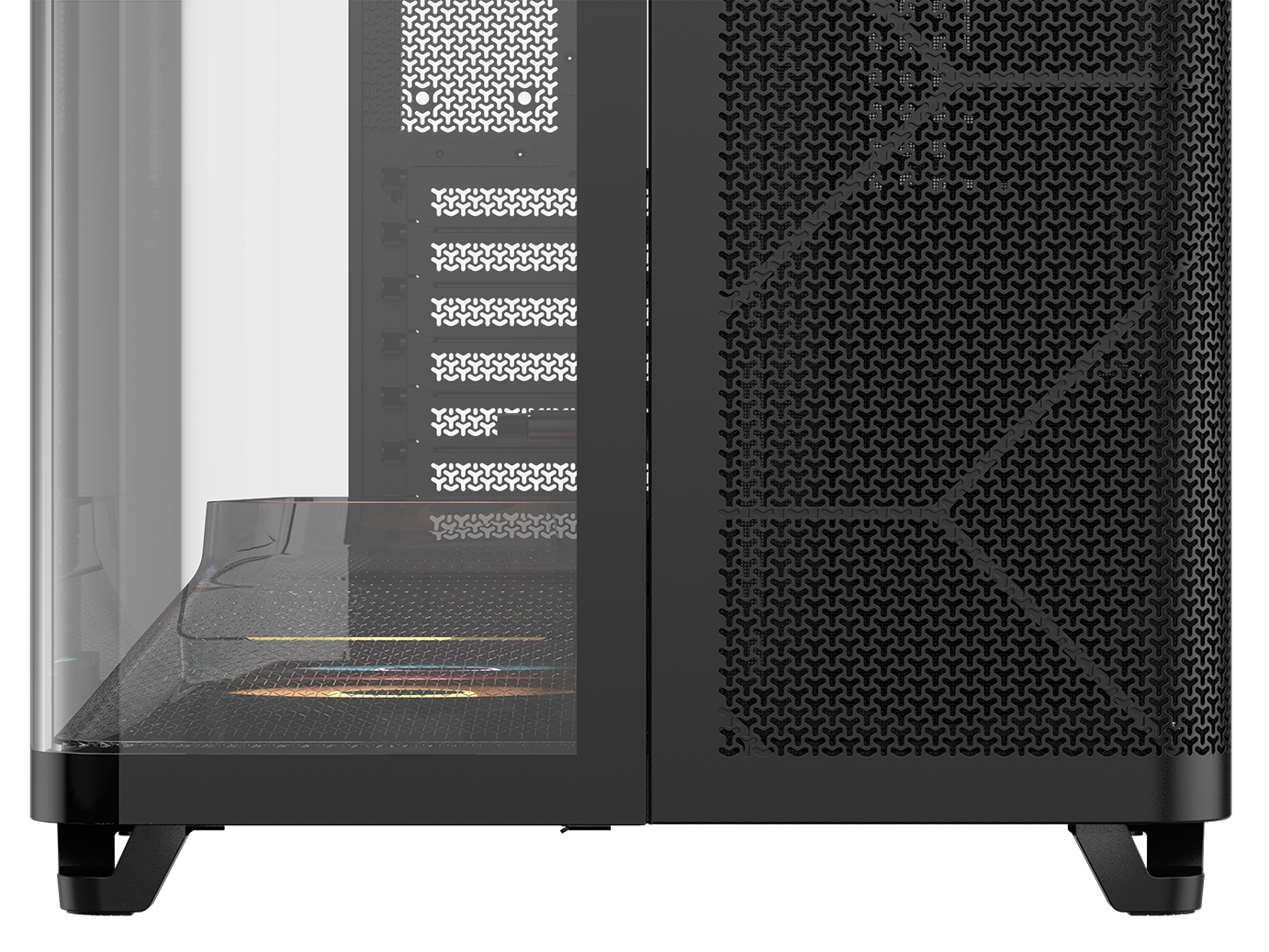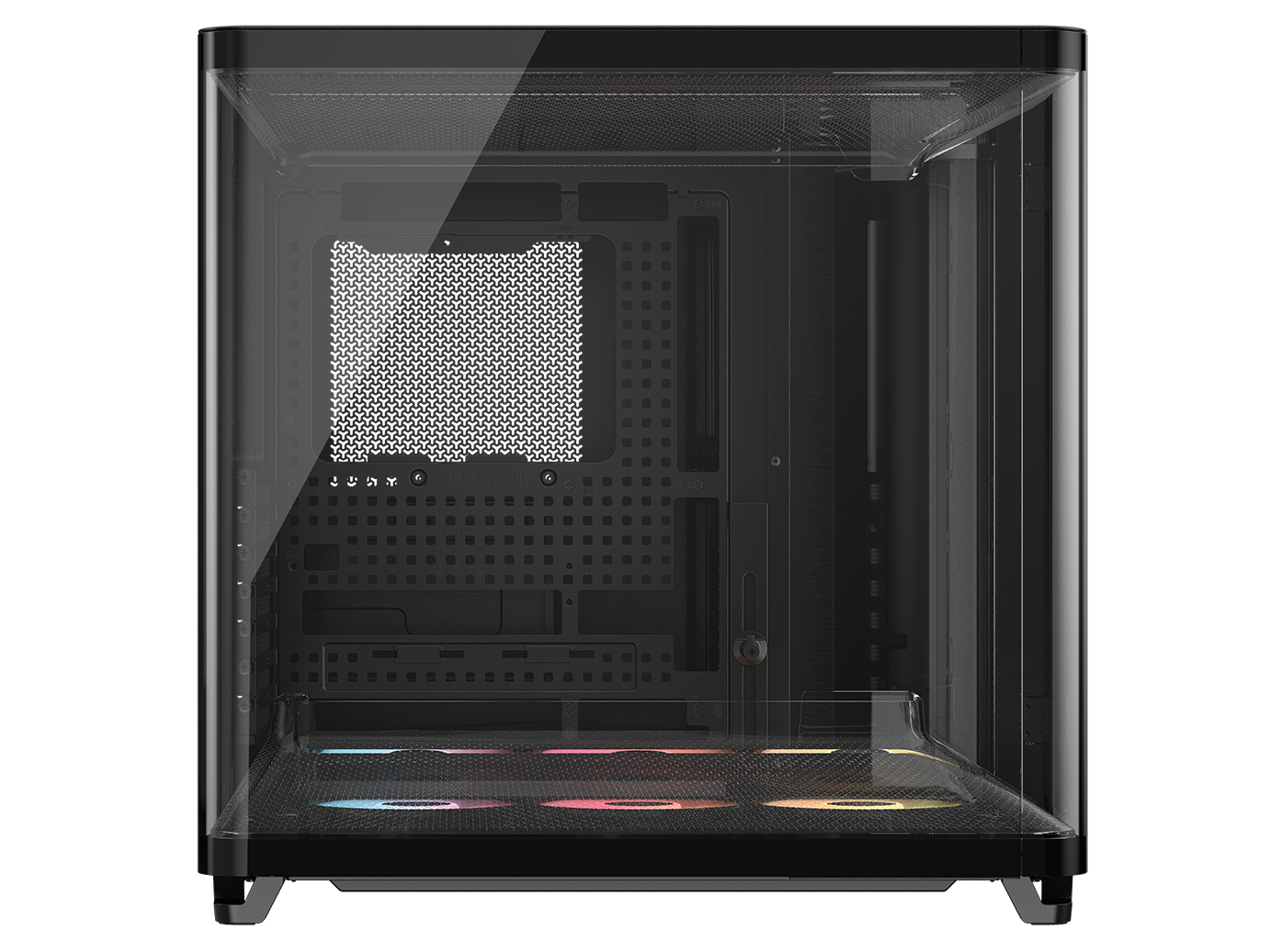 Preinstalled reverse-rotor RS-R ARGB 120mm fans in the bottom of the chassis allow for powerful, low-noise cooling with glorious, unobstructed RGB lighting.