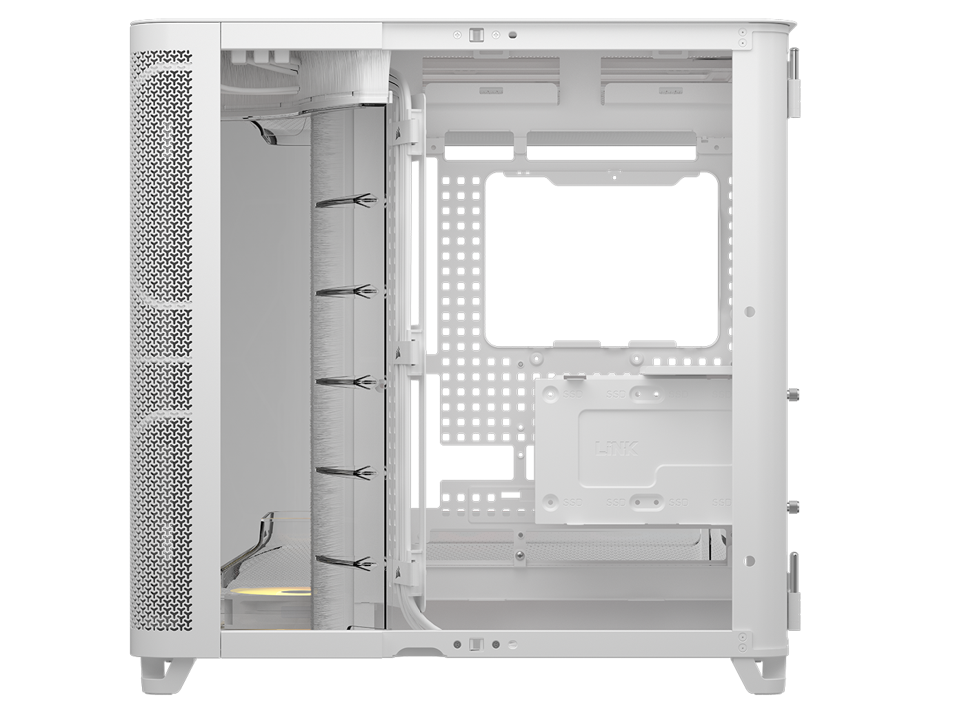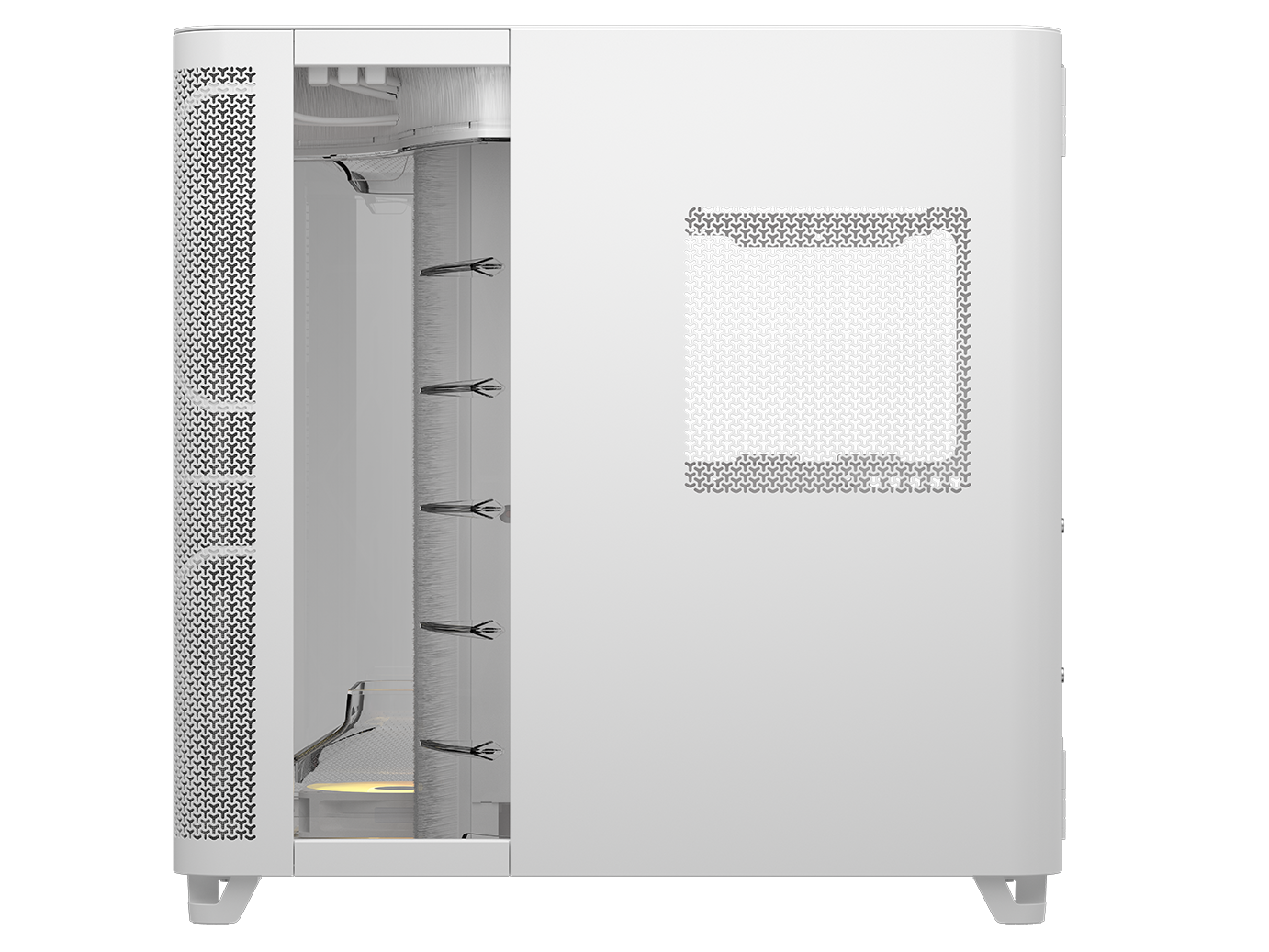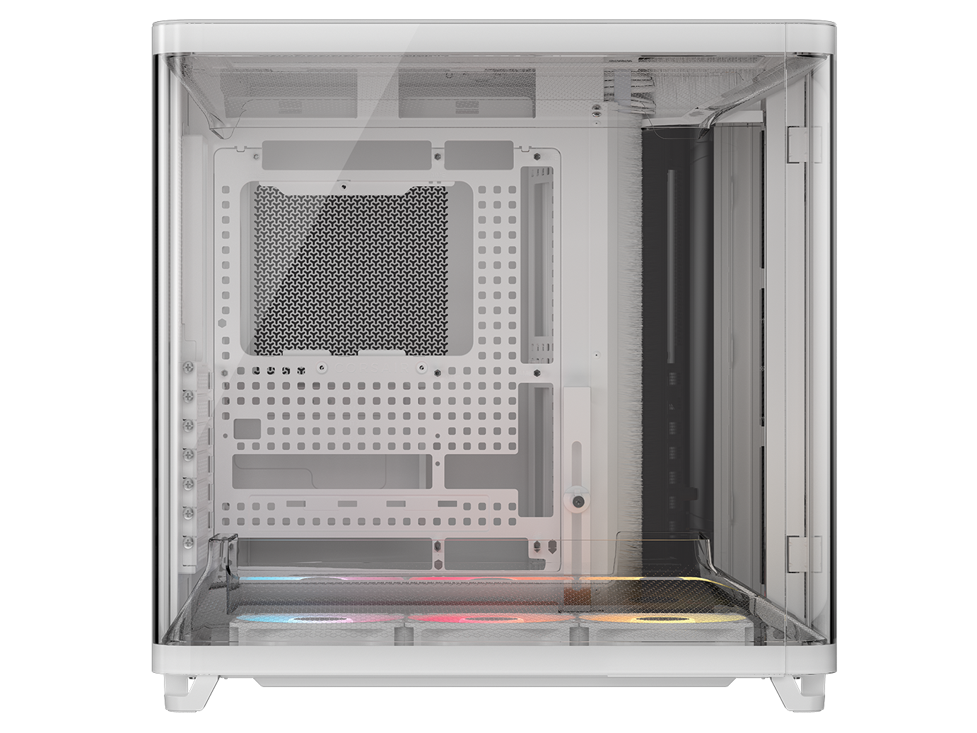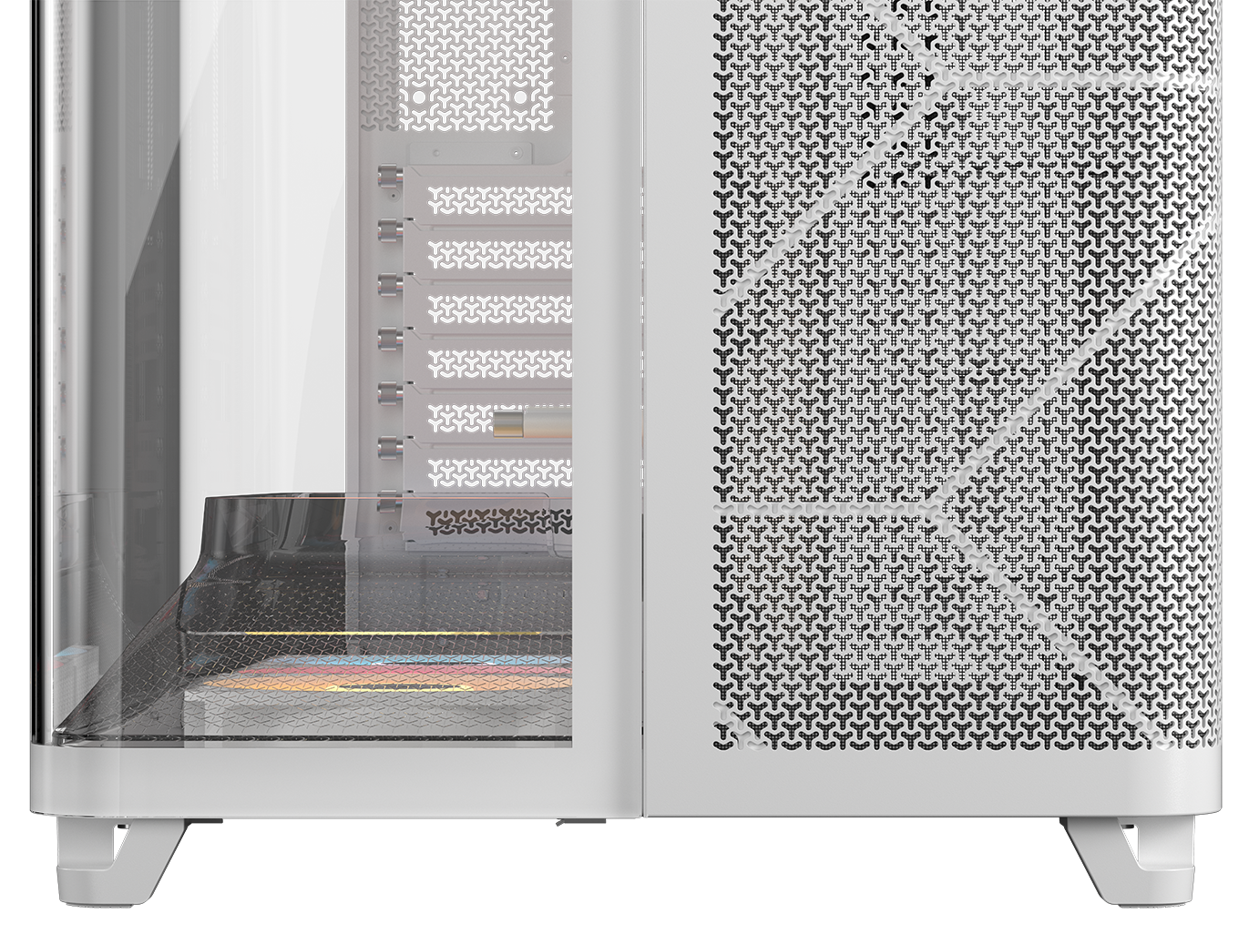 Preinstalled reverse-rotor RS-R ARGB 120mm fans in the bottom of the chassis allow for powerful, low-noise cooling with glorious, unobstructed RGB lighting.