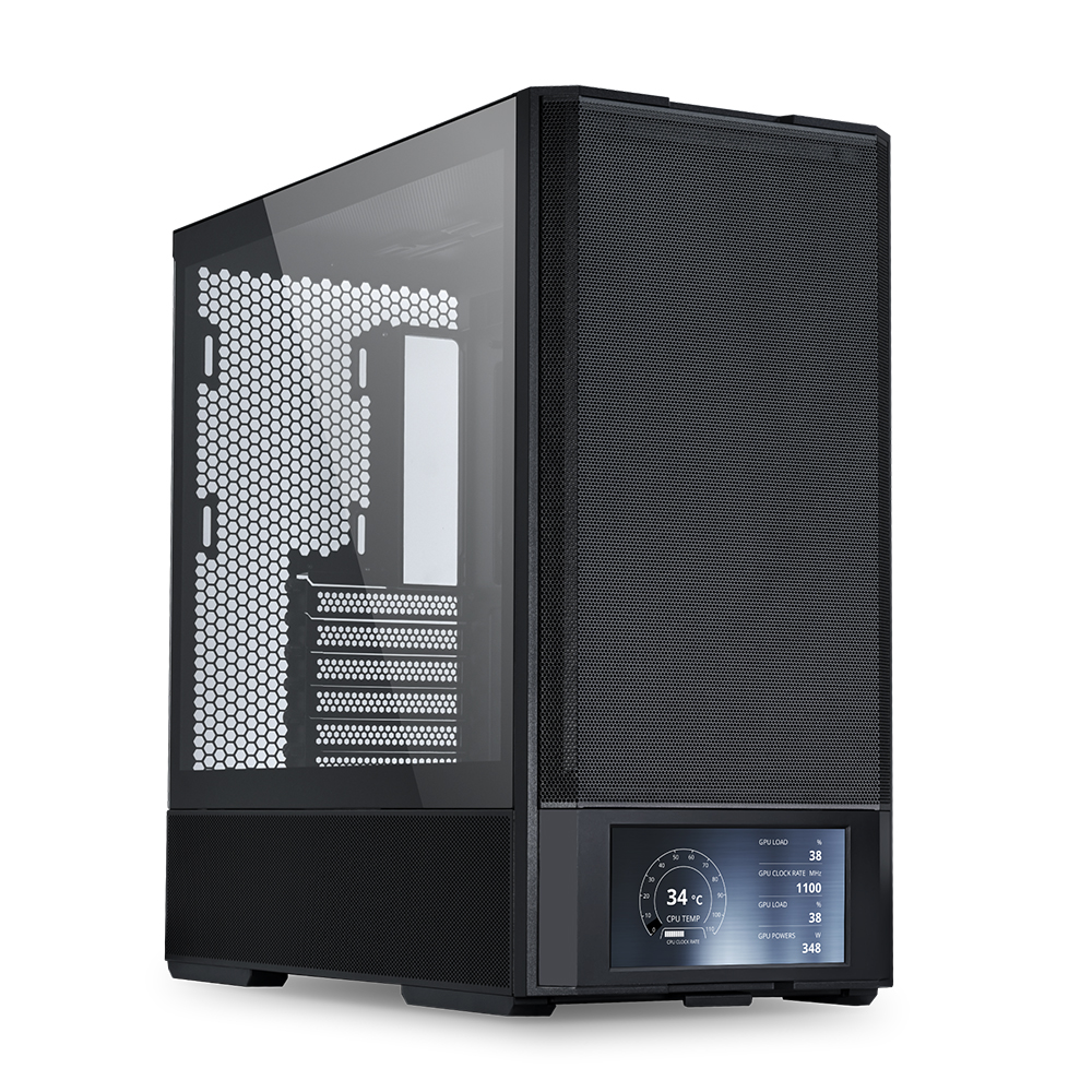 The LANCOOL 207 Digital adds a playful touch to the LANCOOL 207, featuring an integrated LCD screen for real-time system monitoring and customizability—all within a sleek and compact M-ATX chassis.