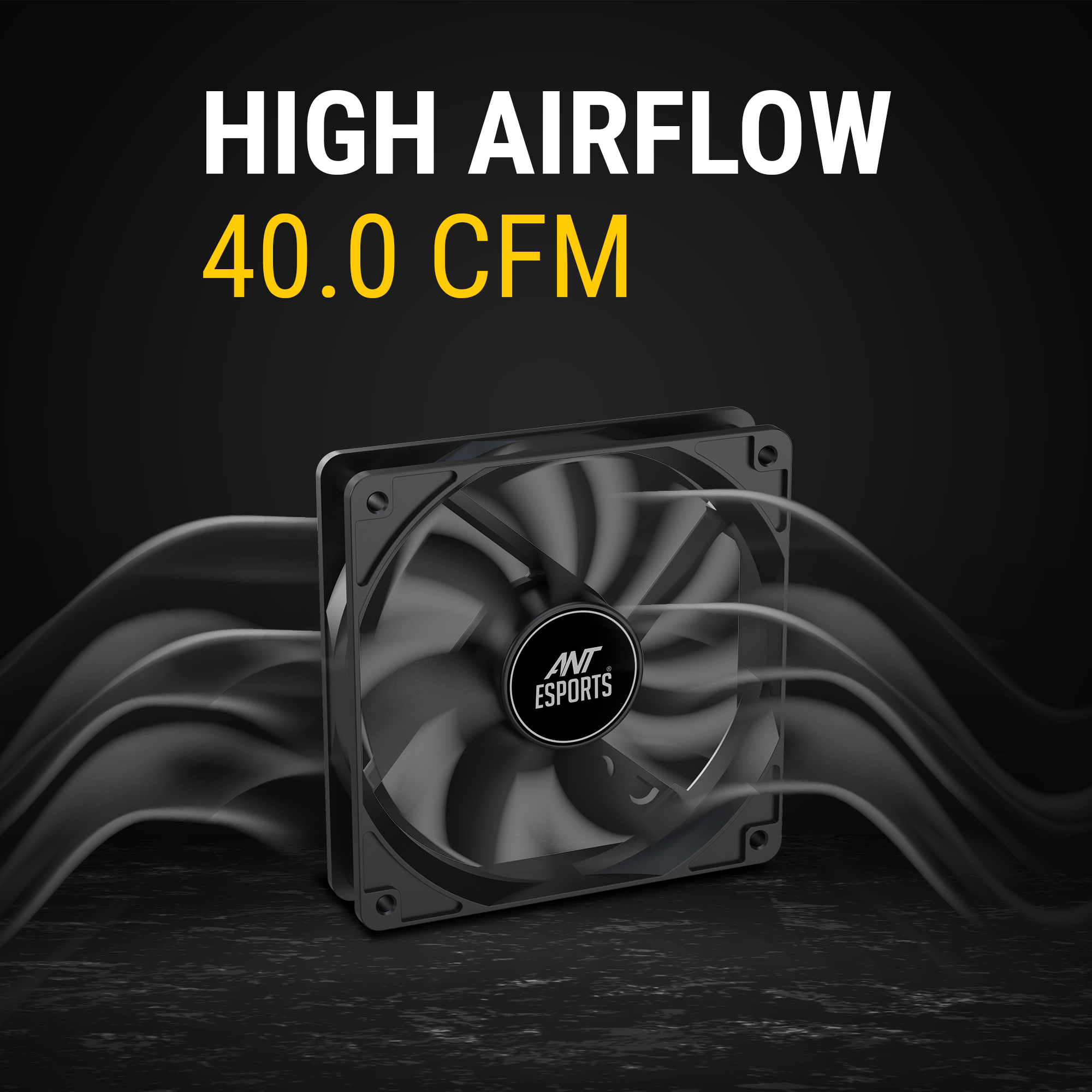 Running at an efficient 1300 RPM, the Carbonflow generates a reliable 40 CFM of airflow, making it the perfect choice for an efficient case fan. The Fluid Dynamic Bearing technology not only contributes to the fan's silent operation but also guarantees a remarkable 30,000 hours of lifespan, ensuring longevity and reliability for extended gaming or work sessions.Designed with user comfort in mind, the Carbonflow comes equipped with rubber pads on the corners, serving as effective noise dampeners and eliminating vibrations during use. Elevate your PC cooling solution with the Ant Esports Carbonflow is where performance, affordability, and reliability converge in a stylish 120mm fan tailored to meet the needs of budget-conscious gamers and PC enthusiasts alike.