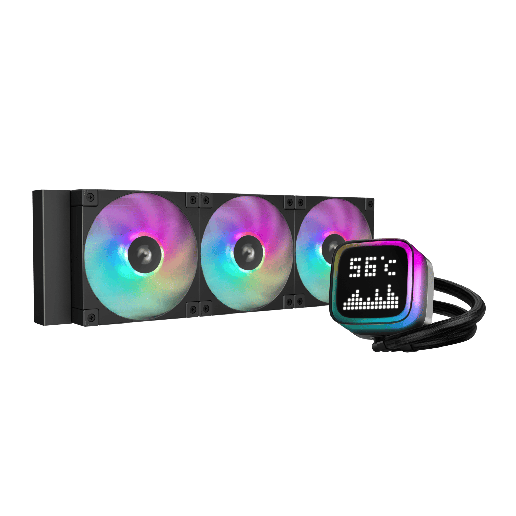 The LP360 is the newest addition to DeepCool's extensive line-up of chart-topping 5th generation liquid coolers. The transparent ARGB pump bezel encases a unique dot-matrix screen with some fun and useful features.