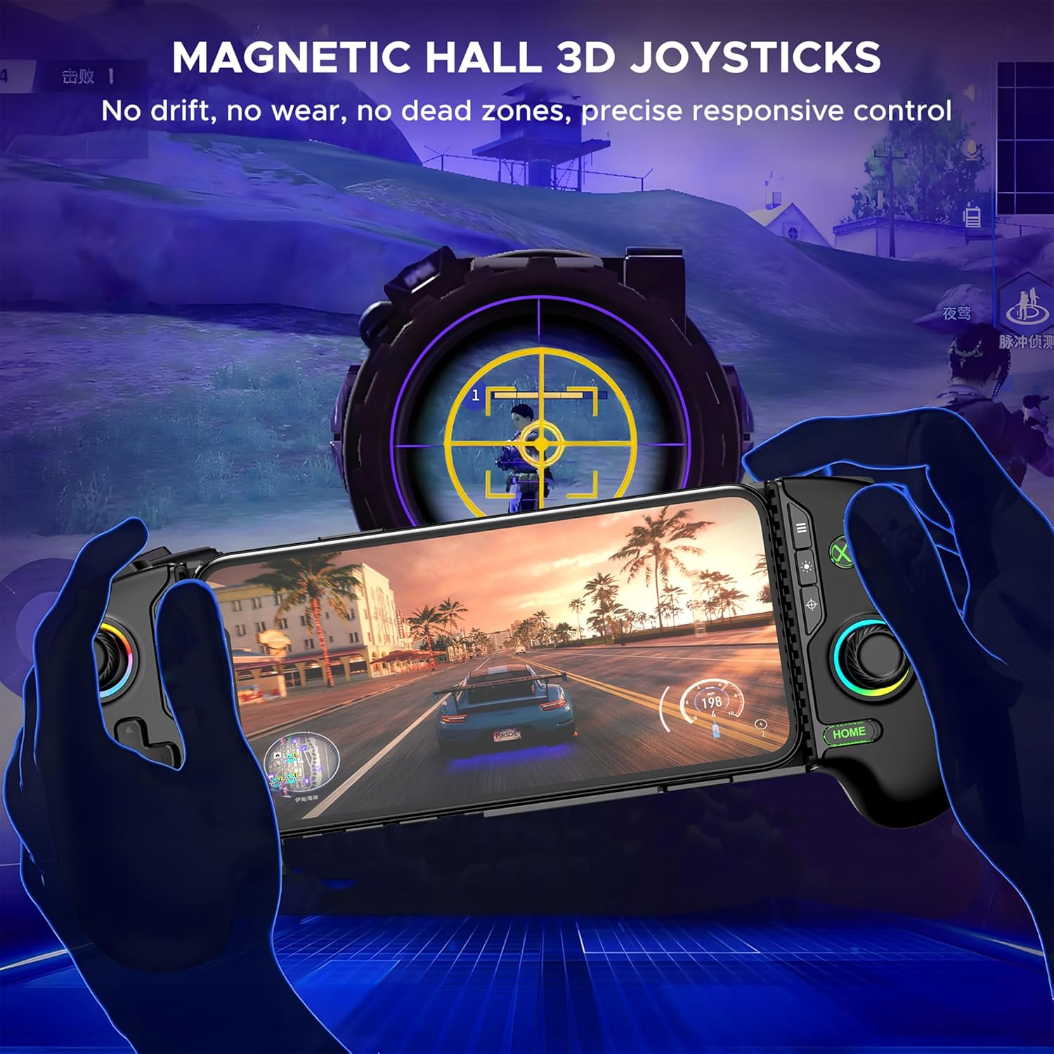 Hall Effect Joysticks + Vibration Motors: Say goodbye to drift with precision Hall Effect sticks. Dual vibration motors deliver immersive feedback. Customize your RGB lighting with 10 dynamic modes.