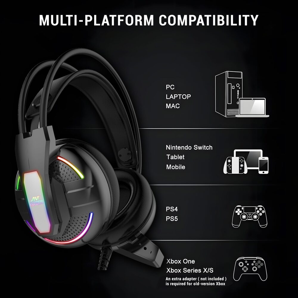 Multi-Platform Compatibility: Gaming Headset Supports PS5, PS4, Switch, PC, Xboxone, Xbox Series X/S, Laptops, Ios, Cell Phones and Other Devices with 2*3.5mm Jack and USB For RGB Lighting (Note: Additional Microsoft Adapter (Not Included) Is Required When Connecting to Older Xbox One Versions.)