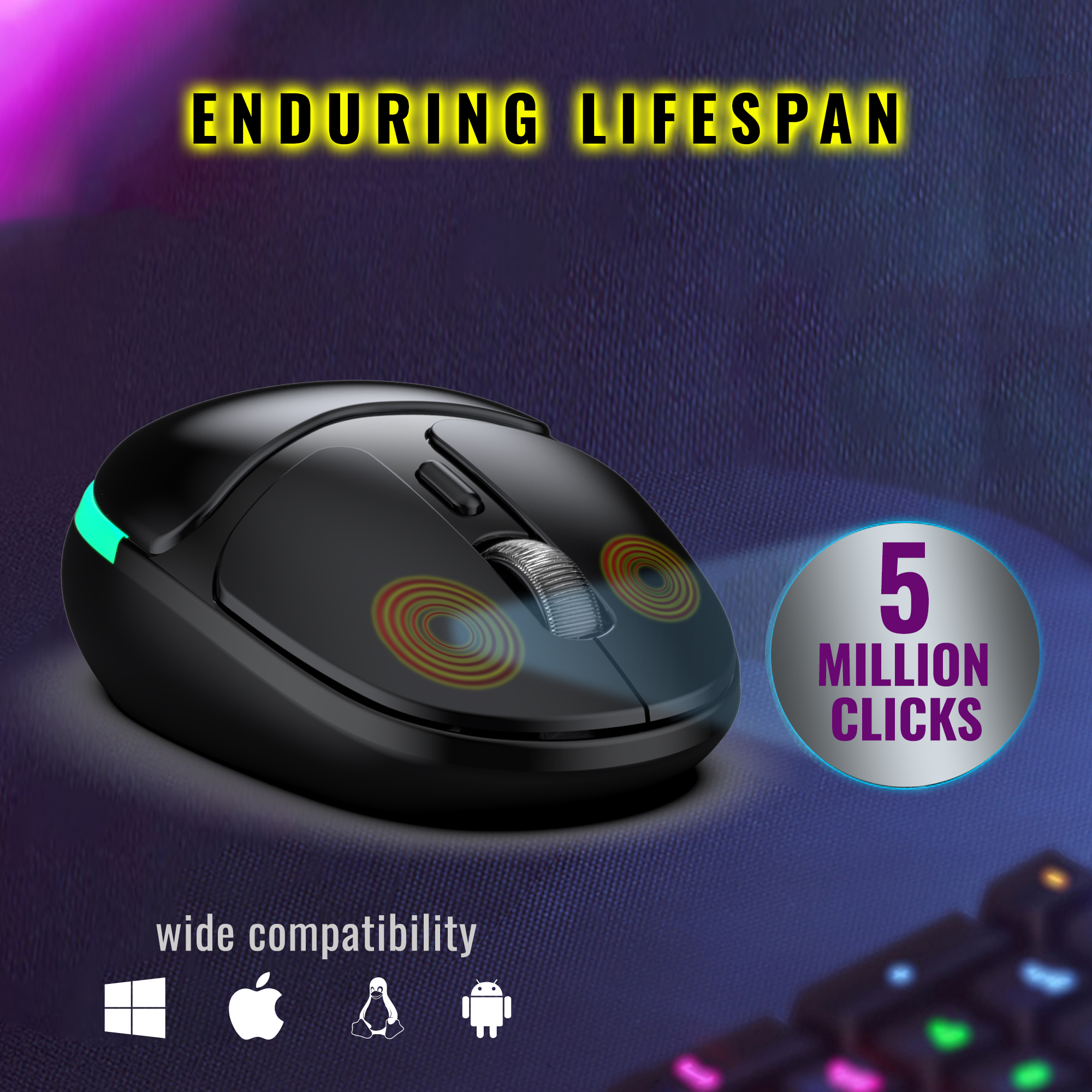 Static RGB Backlit illumination: GM325 Pro Mini 2.4G Portable Optical Mouse with 7 different colour RGB backlit changes randomly while in use, offering soothing lighting, creating cool and fancy atmosphere for work and play.