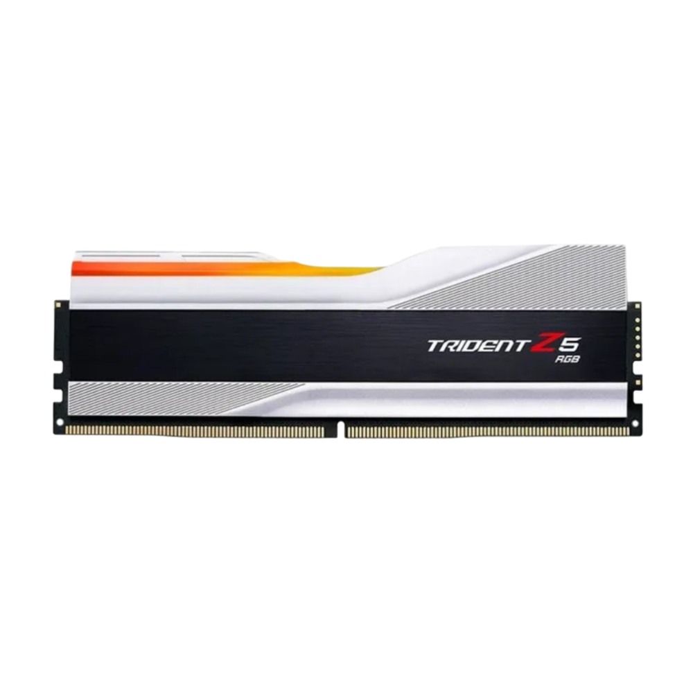 Trident Z5 RGB series DDR5 memory is designed for ultra-high performance on DDR5 platforms. Featuring a sleek and streamlined aluminum heatspreader design, available in metallic silver, matte black, or matte white, the Trident Z5 RGB series DDR5 DRAM memory is the ideal choice to build a high-performance system.