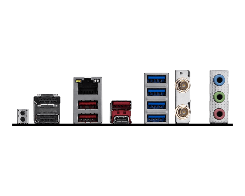 | BACK PANEL PORTS | Clear CMOS Button DisplayPort 2.5G LAN USB 10Gbps Type-A USB 5Gbps Type-A Wi-Fi / Bluetooth Audio Connectors Flash BIOS Button HDMI™ USB 10Gbps Type-A USB 10Gbps Type-C |