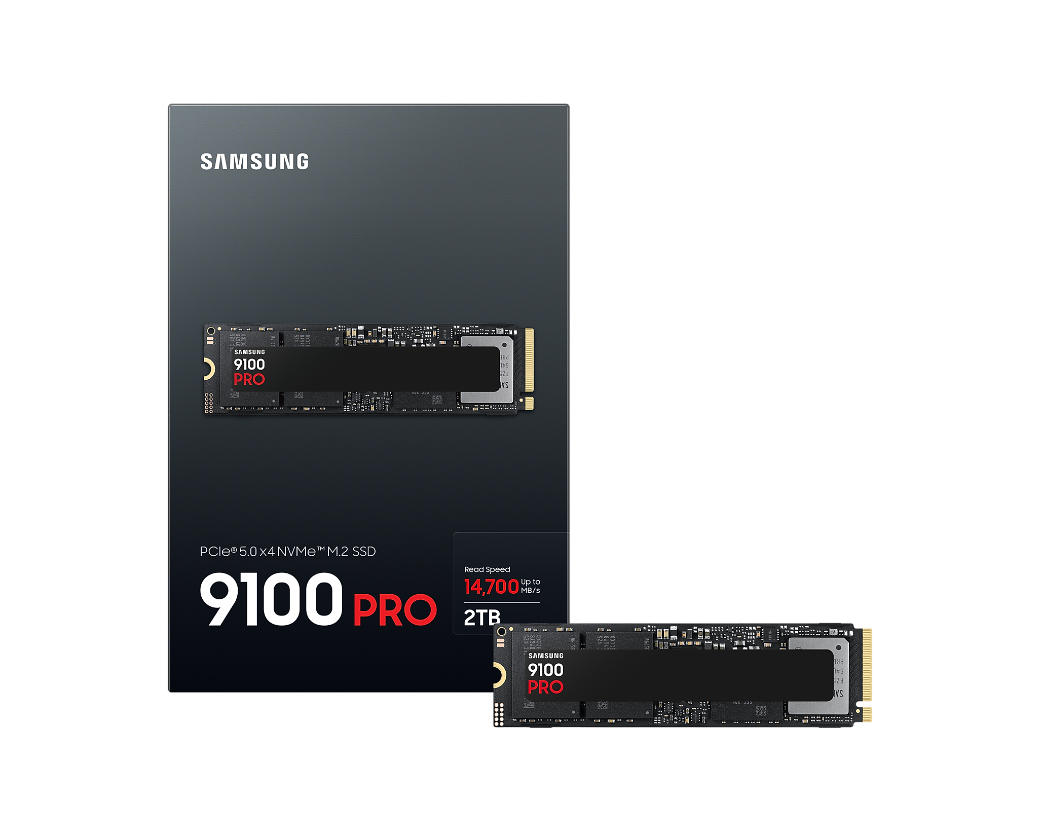 *Image shown for illustrative purposes only.*990 PRO sequential read/write 1,221/1,255 MB/s per Watt, 9100 PRO sequential read/write 1,822/1,703 MB/s per Watt based on the internal test result of the 2TB capacity model.